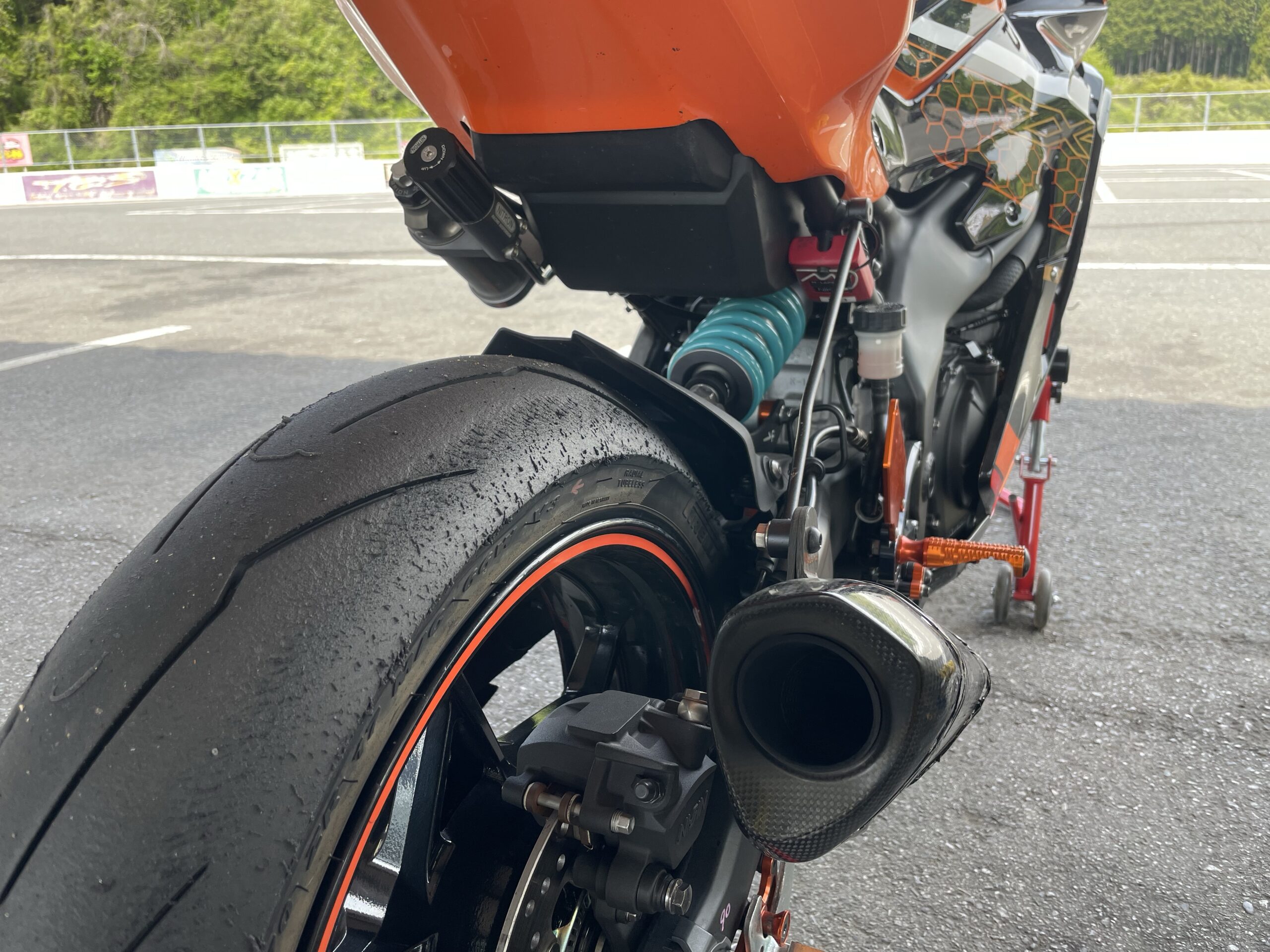 フロントタイヤ引っ張ったら、リアスタンド外れました(汗)