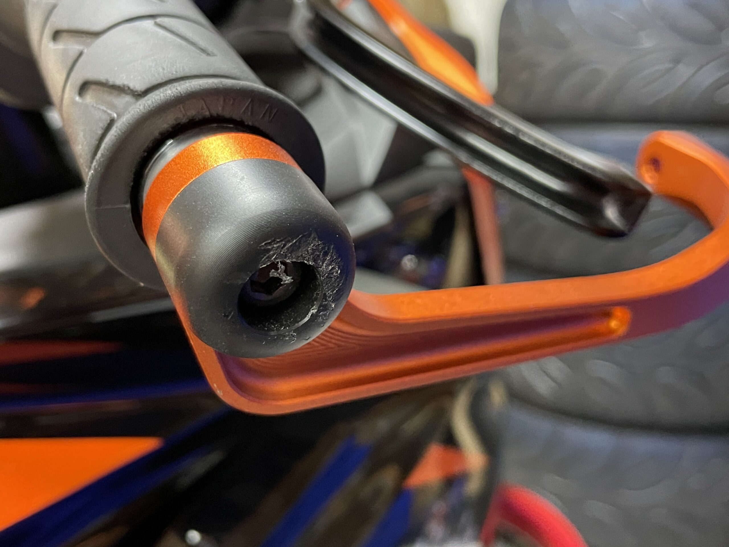 思いっきりバイク倒れたけど