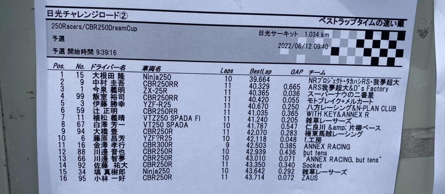 新品タイヤで予選に挑んだが39秒に入れられず残念。