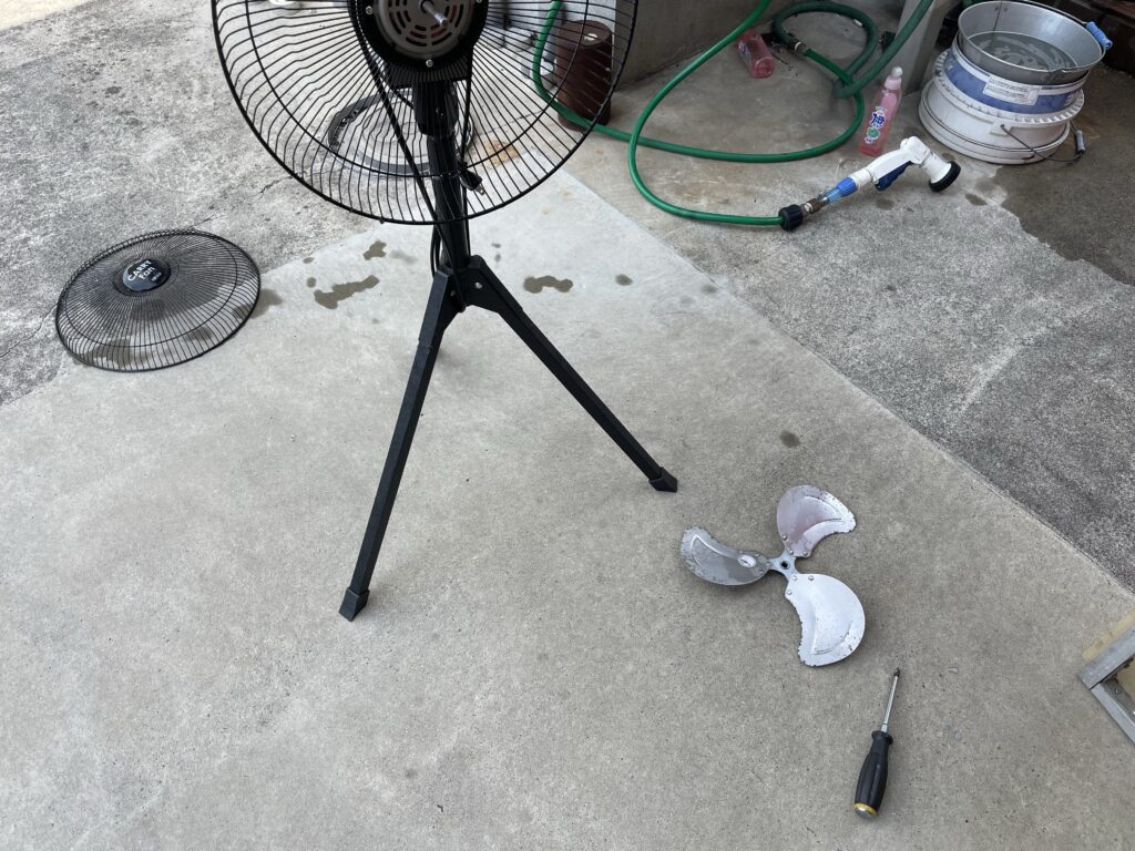 今日は暑かったから、現場の扇風機を用意した。