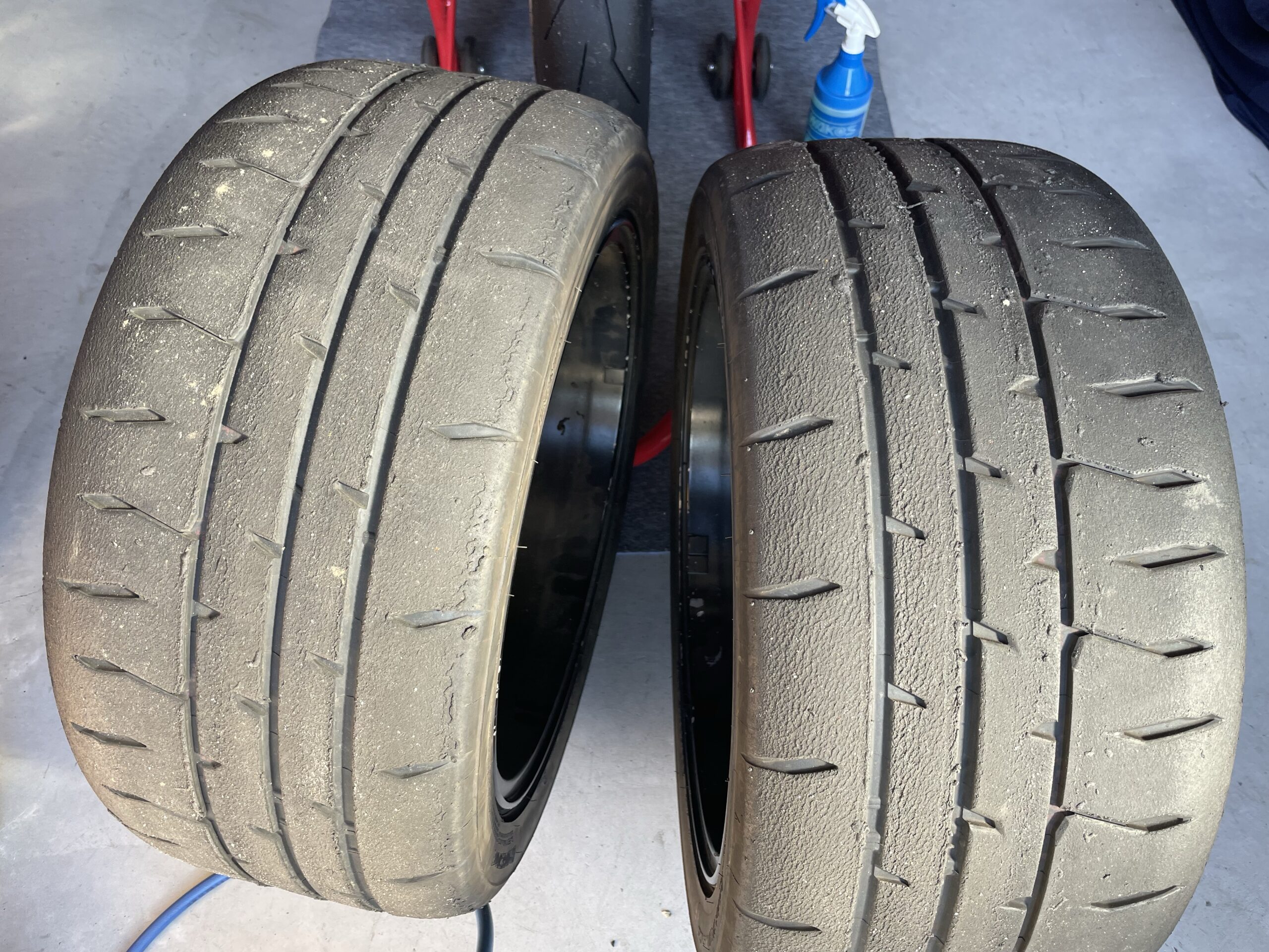 んで、走行後のRE-71RSを点検してたんだけど