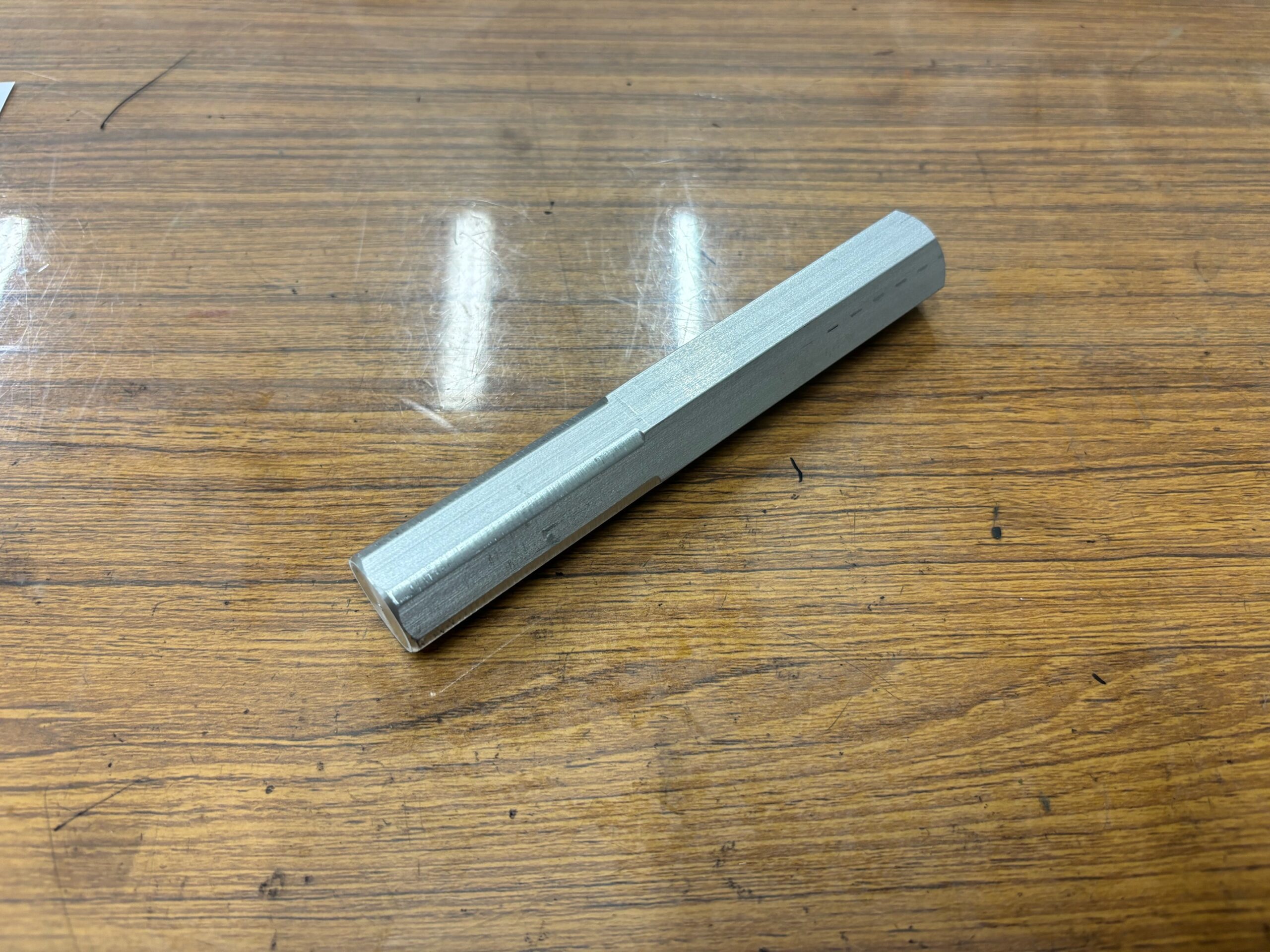 置いた時に転がらないように六角材を使用。
