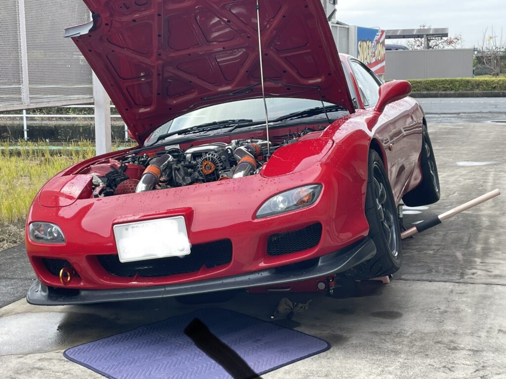 赤卍号(FD3S)をブライアン(トレーラー)から降ろした。