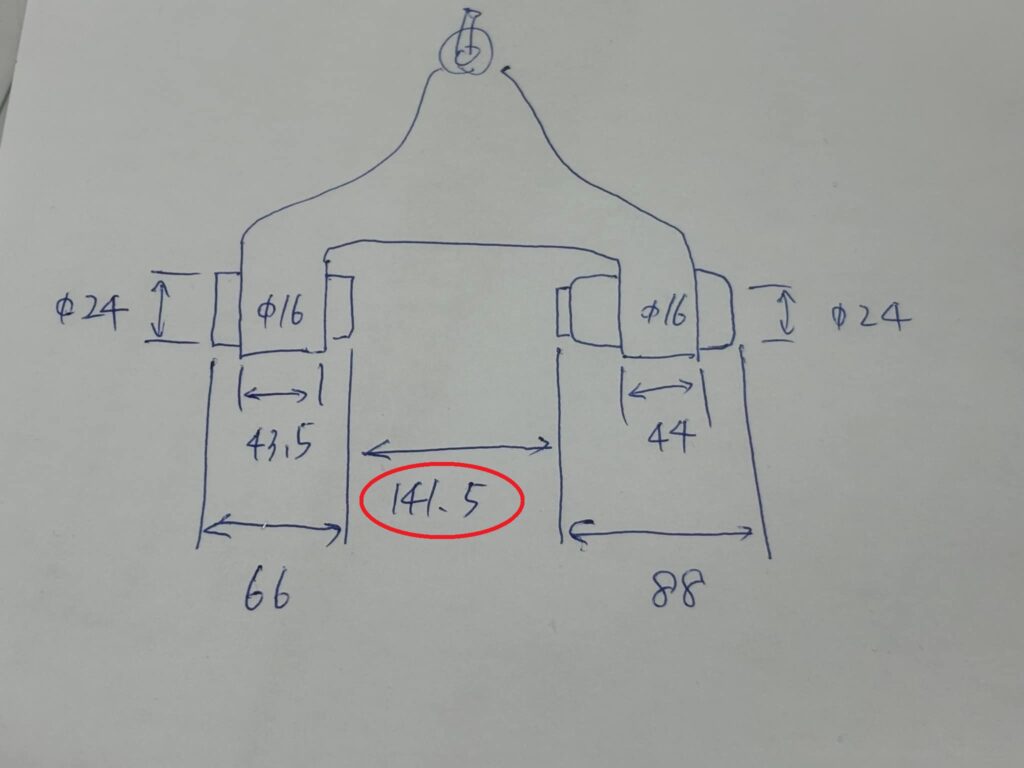 送られてきたアームは左右とも141.5ミリだったので