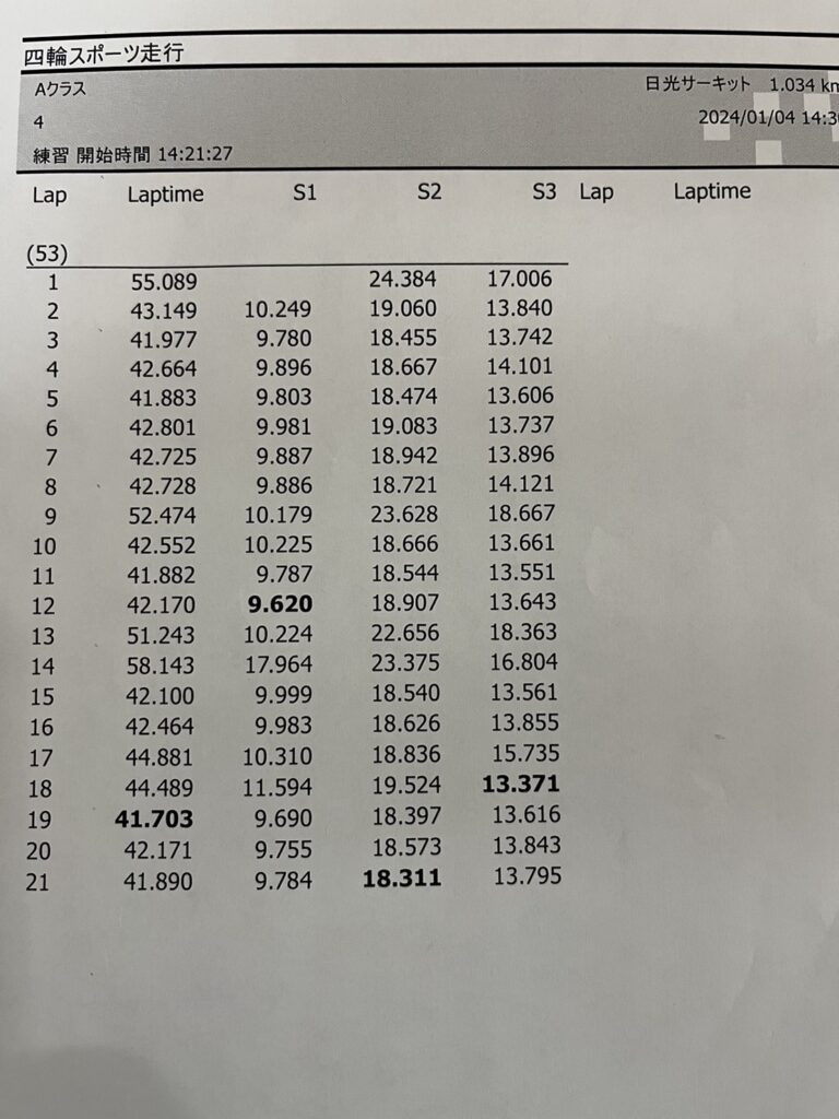 実は先週シェイクダウンを済ませ日光41秒9でした。