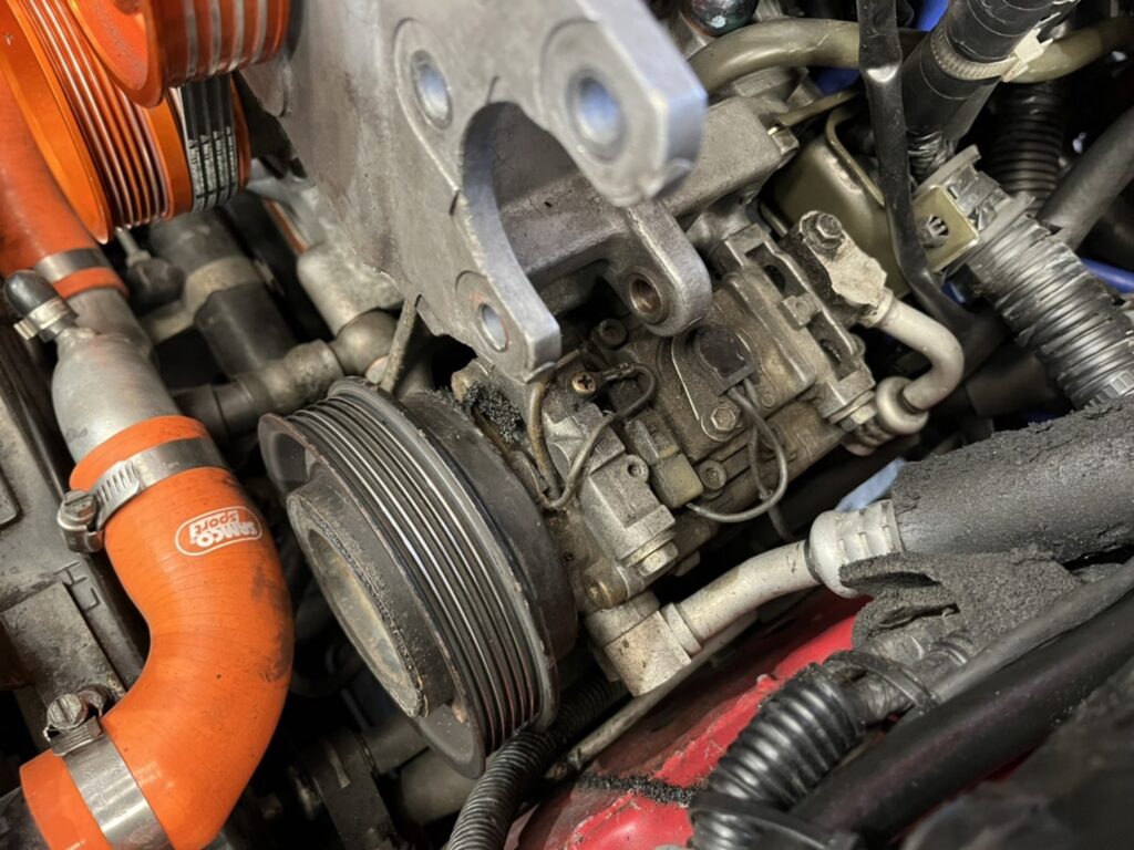 なんかエアコンのプーリーから異音がしてた。