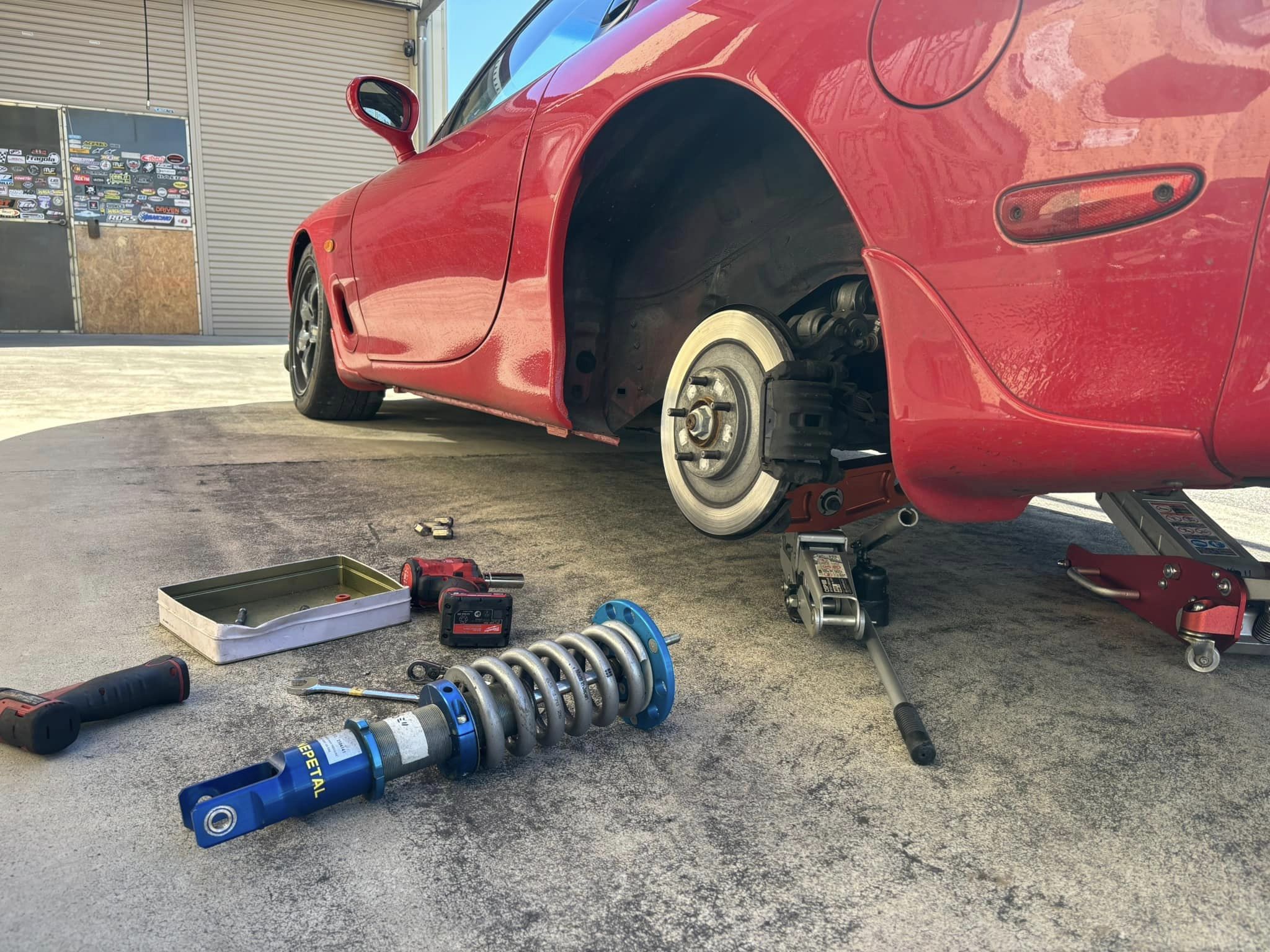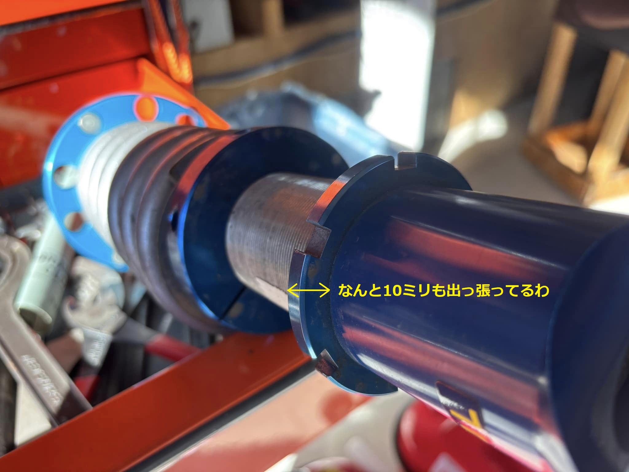 赤卍号のホイールが車高調のシートに干渉するのを思い出した。