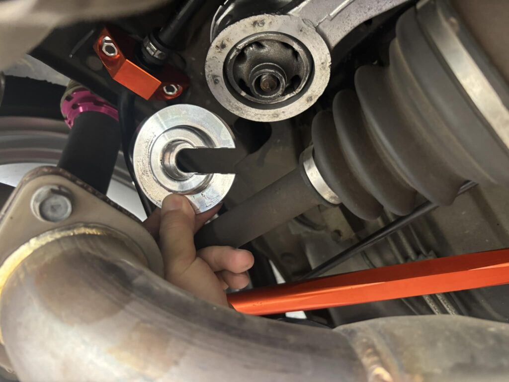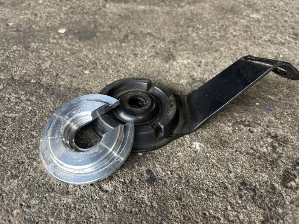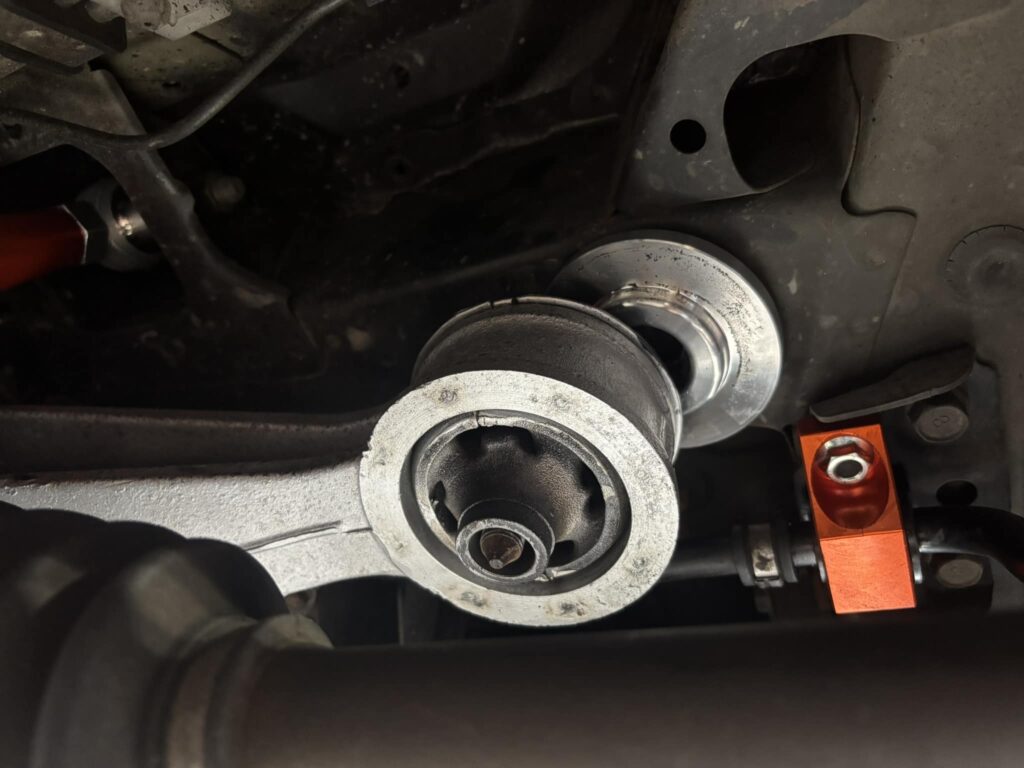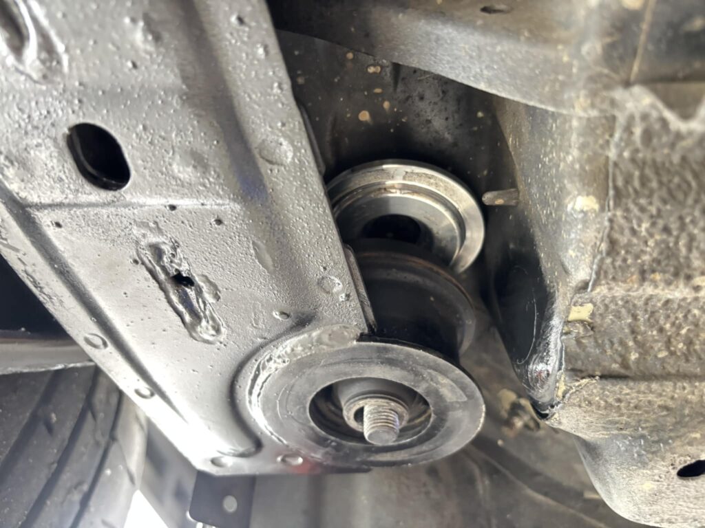 純正のブッシュのままカラーを挟むだけだが