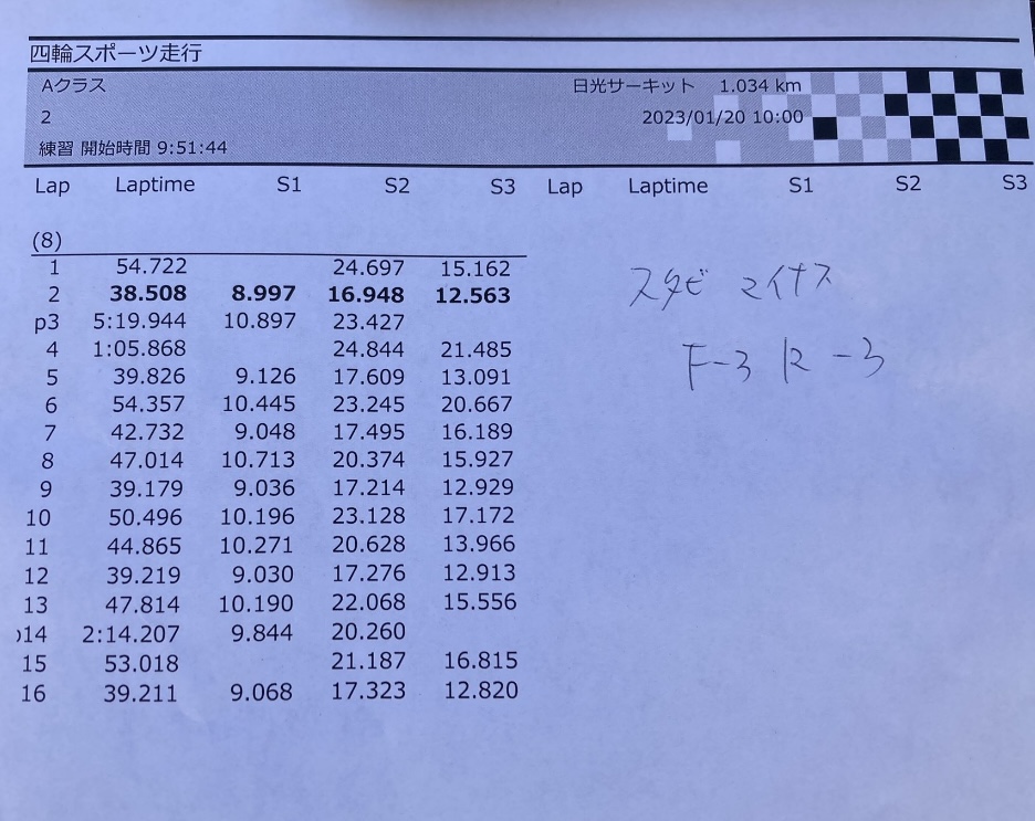 シフトミスもあったけど、タイムは38秒5まで伸びたぜ。