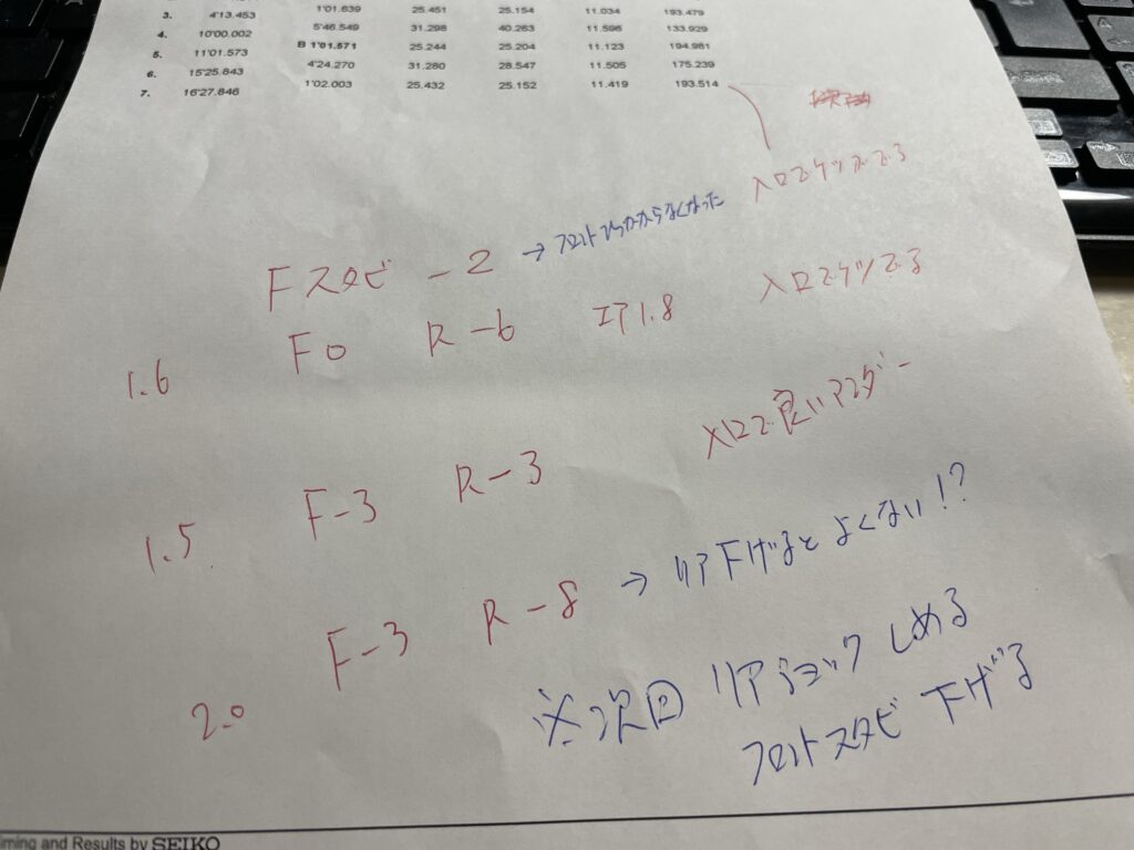 フロント3戻しの、リア3戻しにして走ってみたら