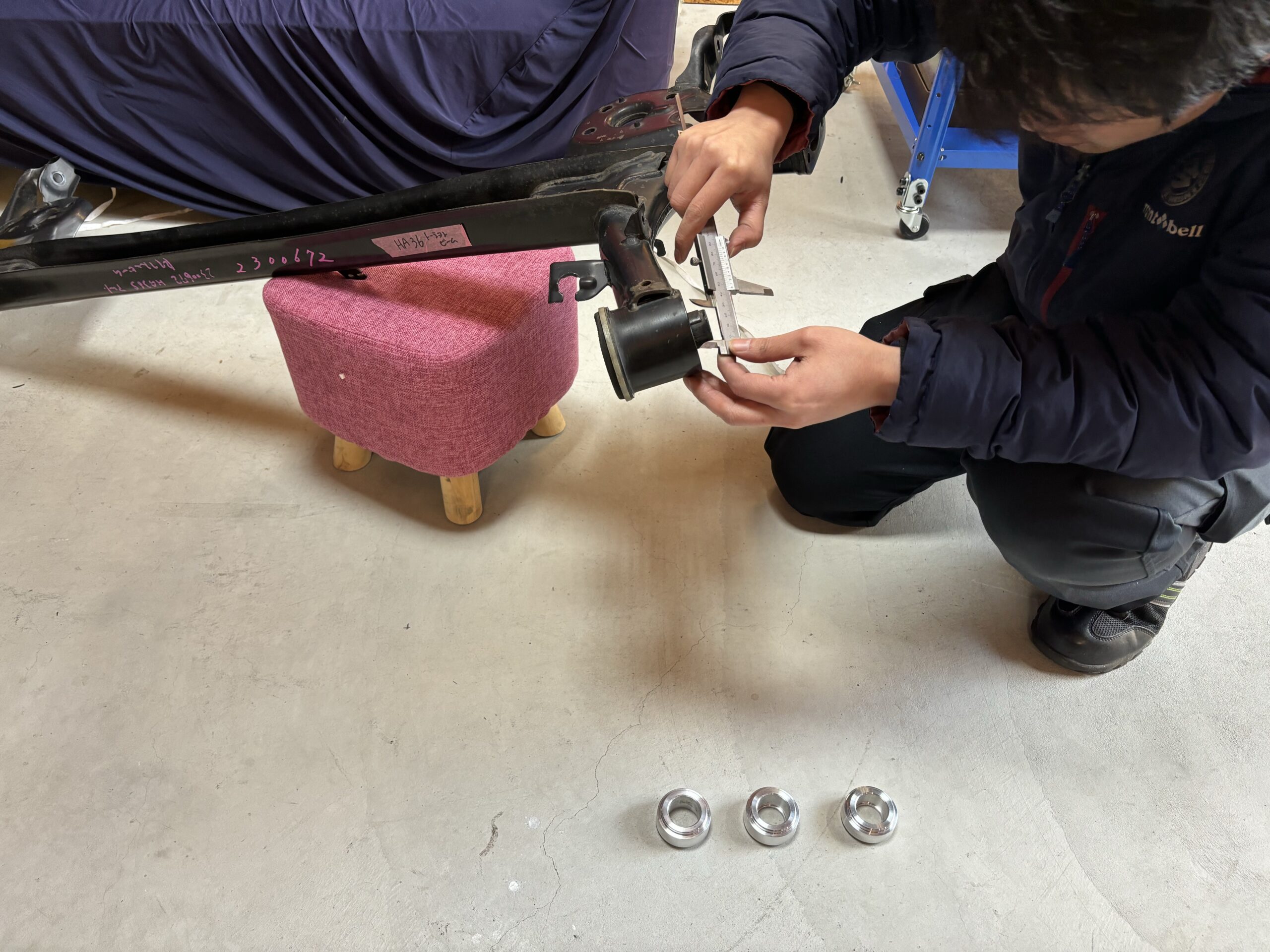 このトーションビームはピロにする予定なので