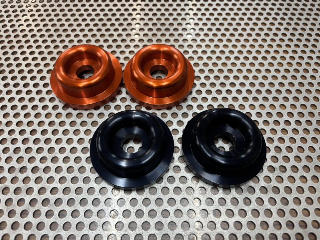 どちらもアルマイトは黒とオレンジが選べる。
