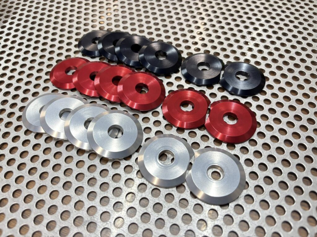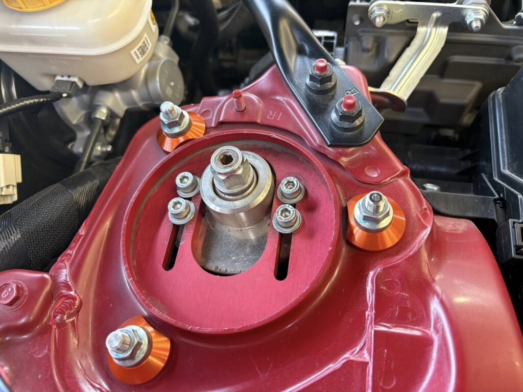 ショックの脱着の際に純正ナットでキズになるのも防ぐ。