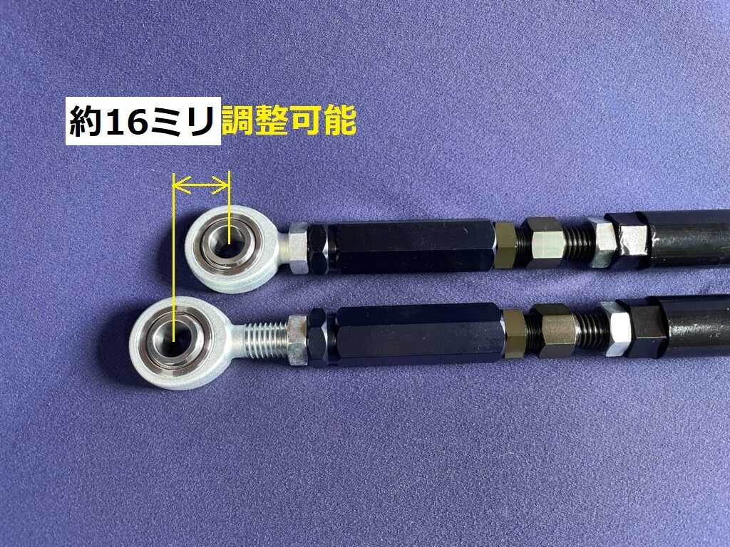 ロッドエンドのネジ山は必ず16ミリ以上噛ませてください。