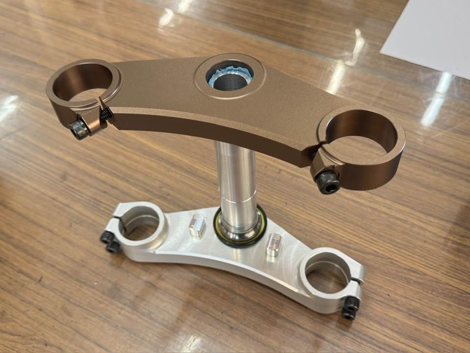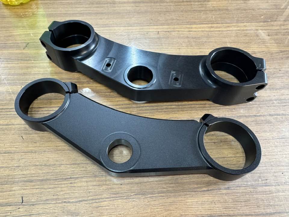 ハンドルバーホルダーや、ステムキットのアンダーブラケットなどは、この艶無し黒です。