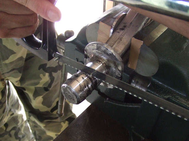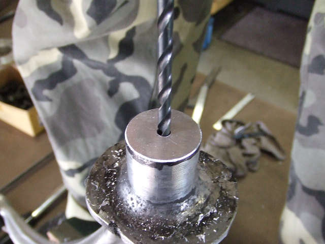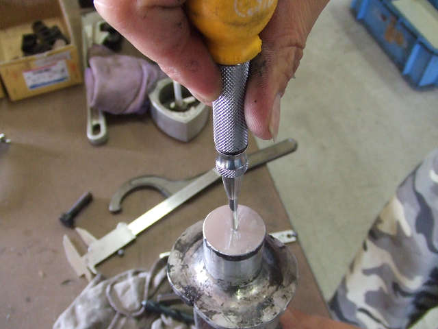シャフト径はΦ30なので中心の15ミリの位置にポンチを打ちます!