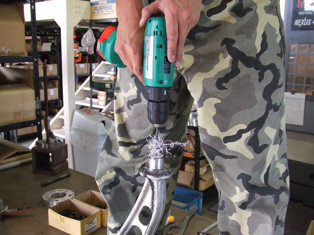 平らにしたら次にピロを取り付ける為の穴加工です。