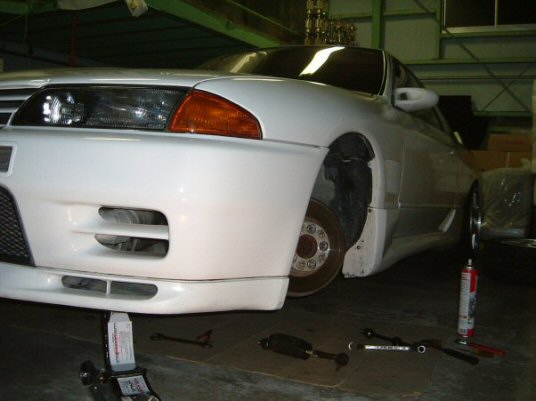 ですので助手席側のみ、タイロッドのネジ部をカットしてあげます。