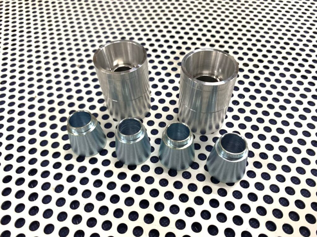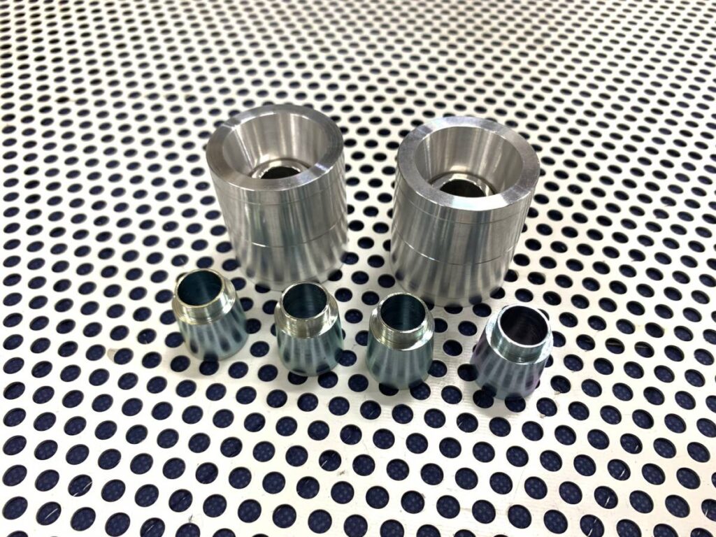 まずは純正のブッシュをプレスで大まかに打ち抜きます。