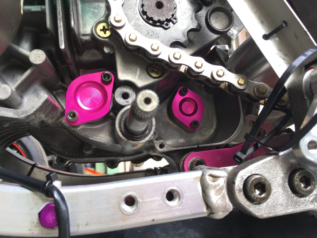 オイルポンプを外したら、付属のカラーを入れます。