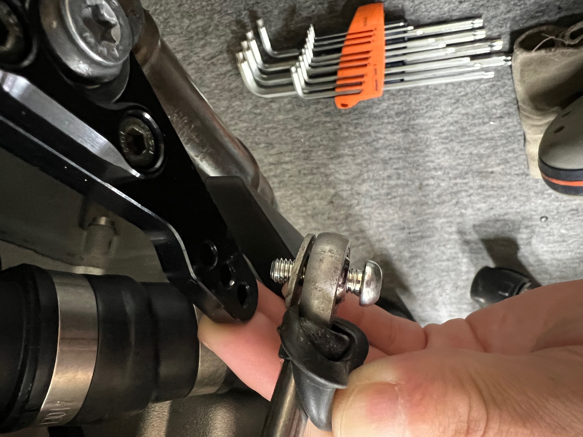 純正と同じように、ロッドエンドとペダルの間には純正のワッシャーを入れてください。