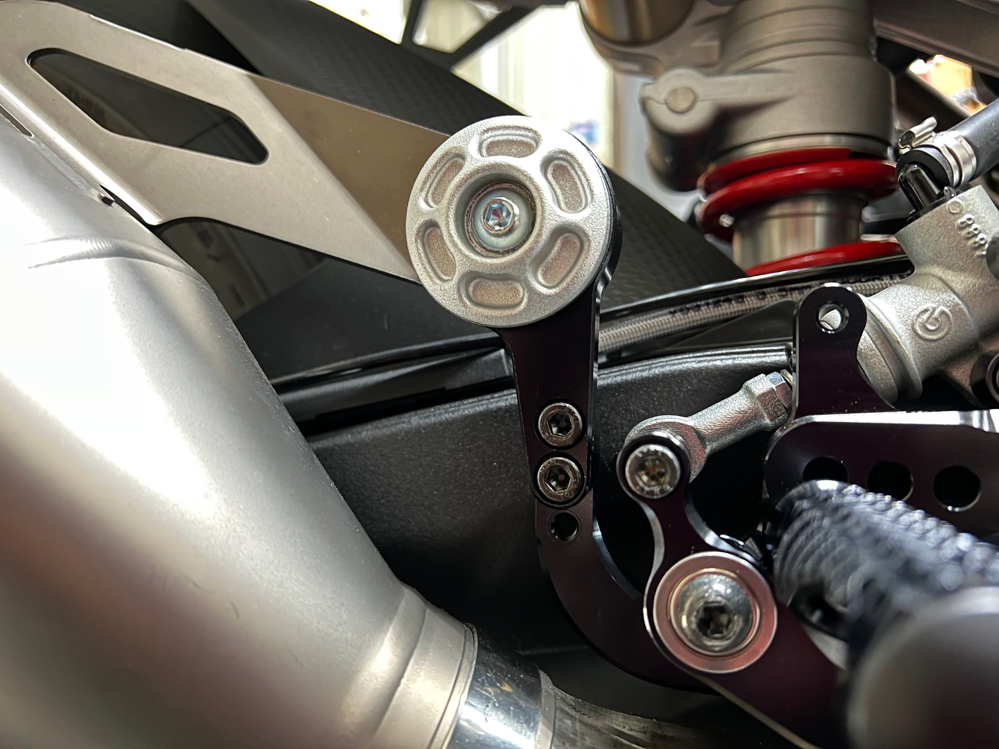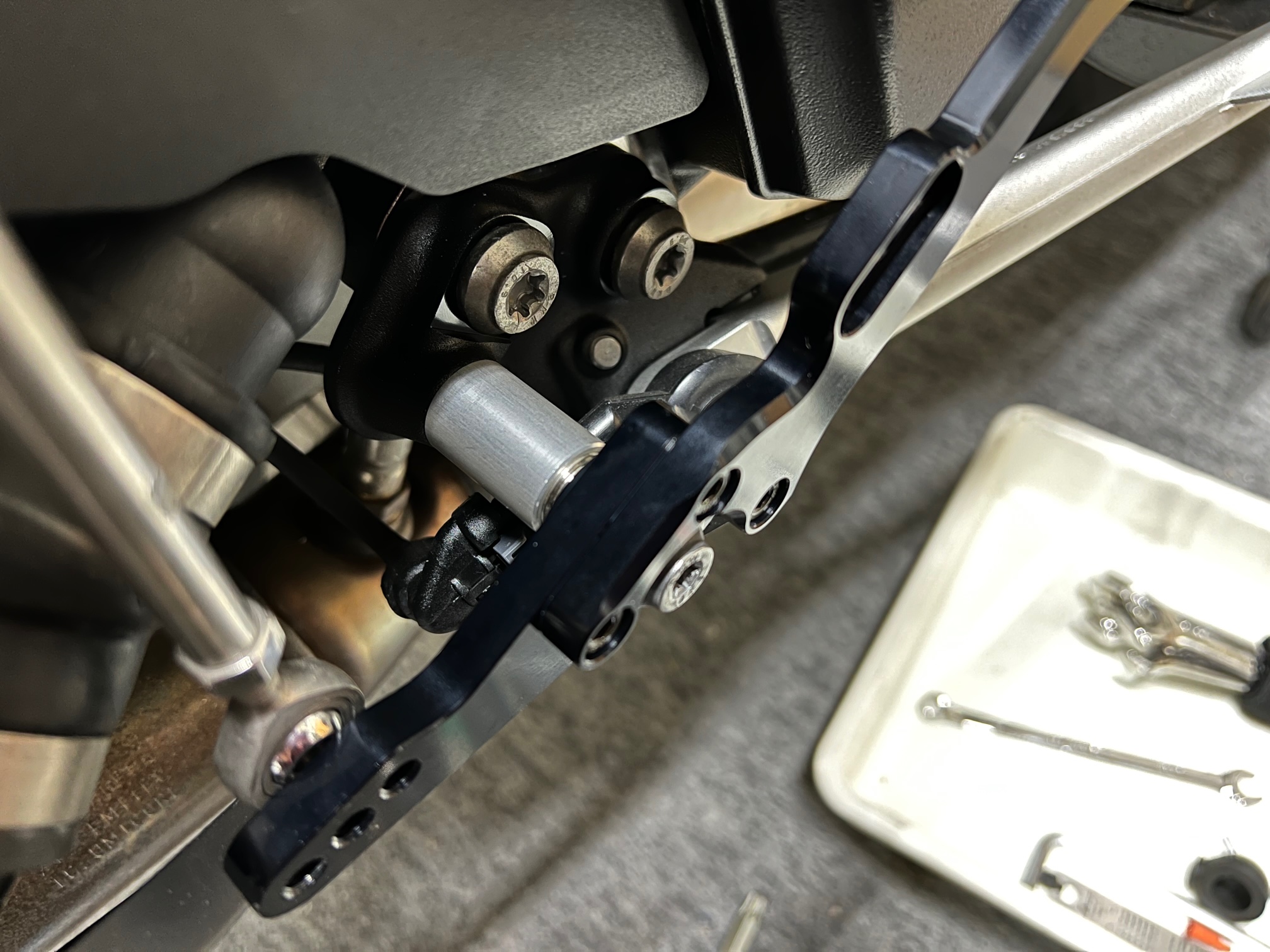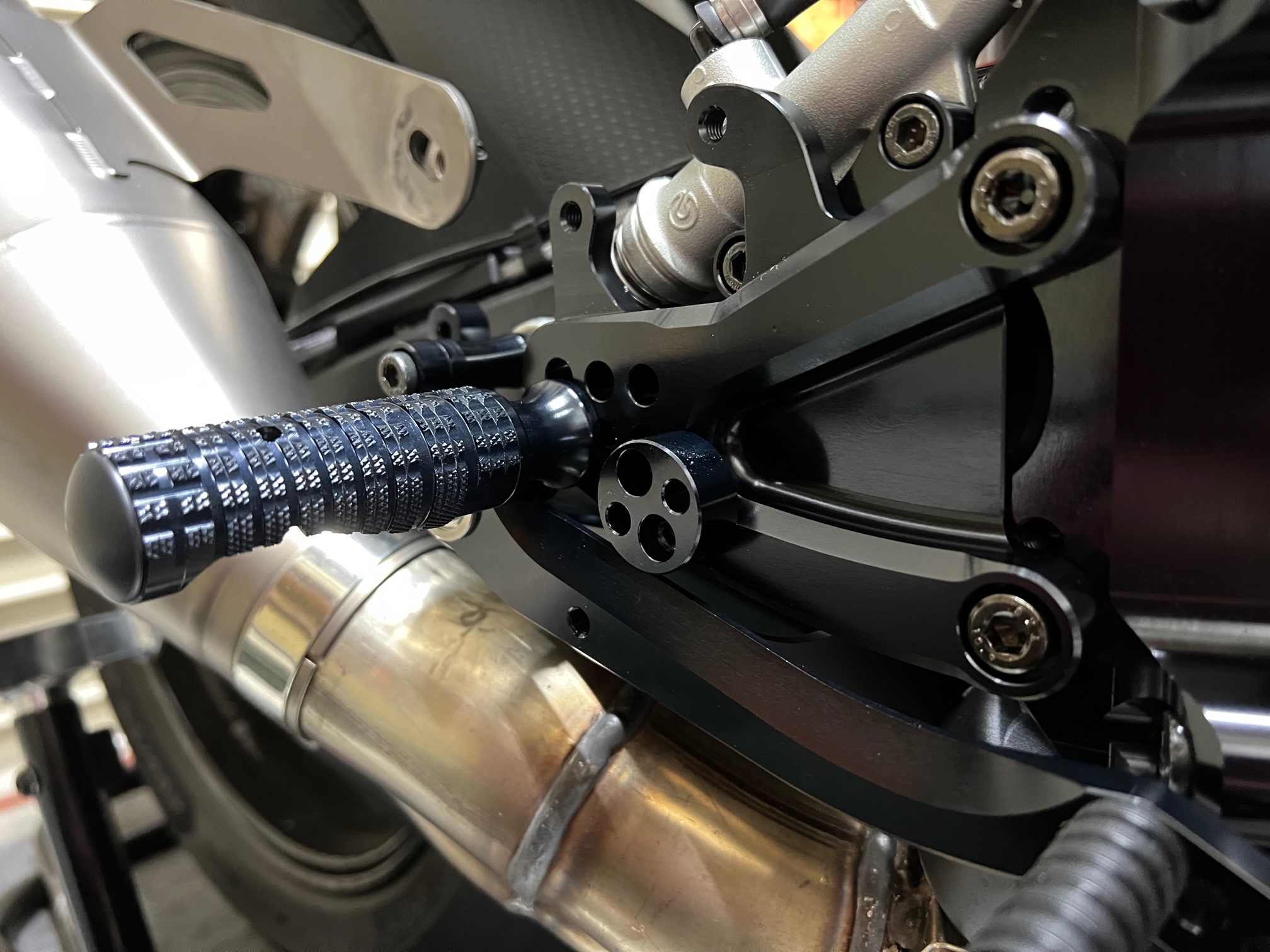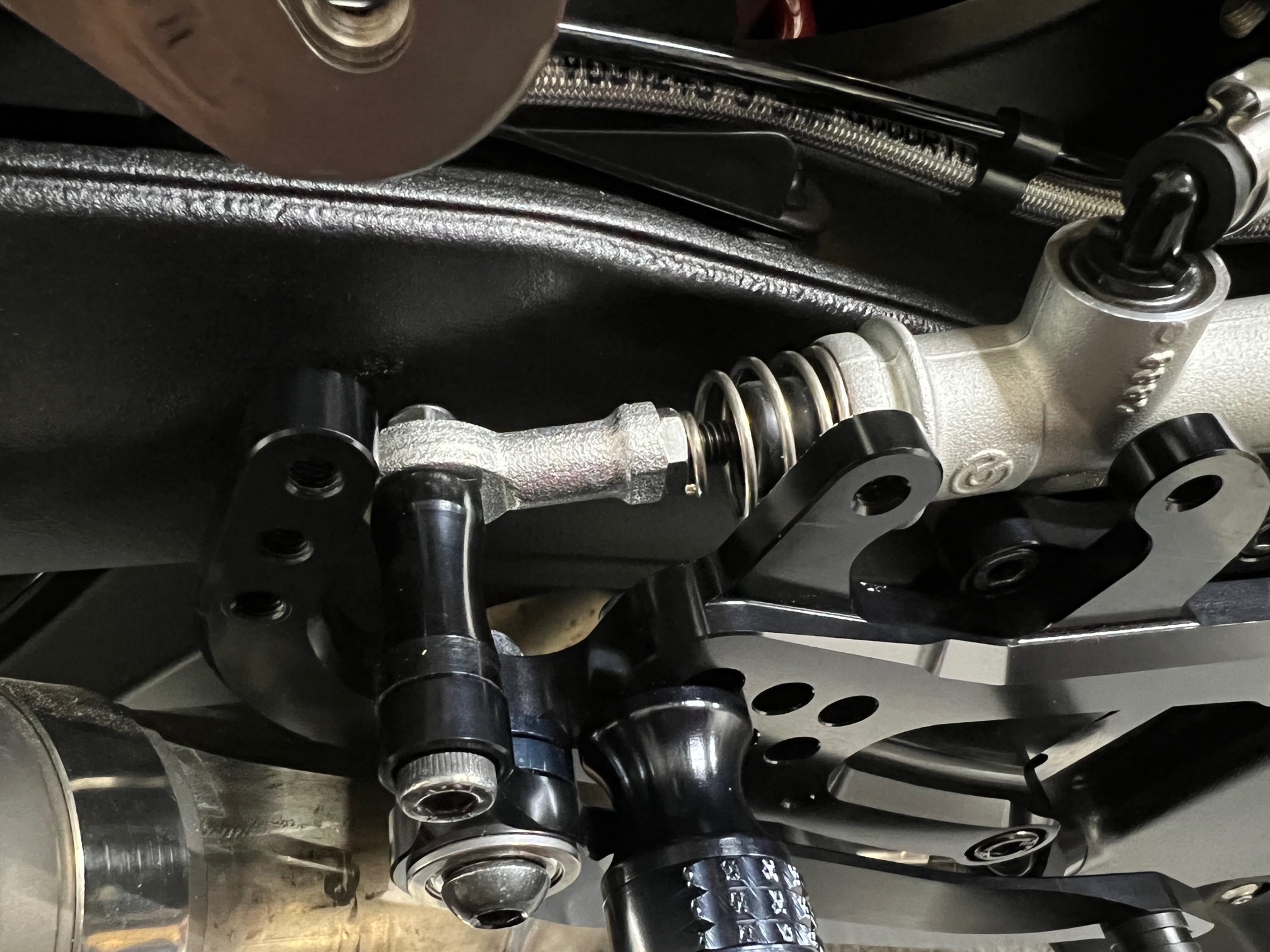 ボタンM6×20でロッドエンドをシフトペダルに固定します。