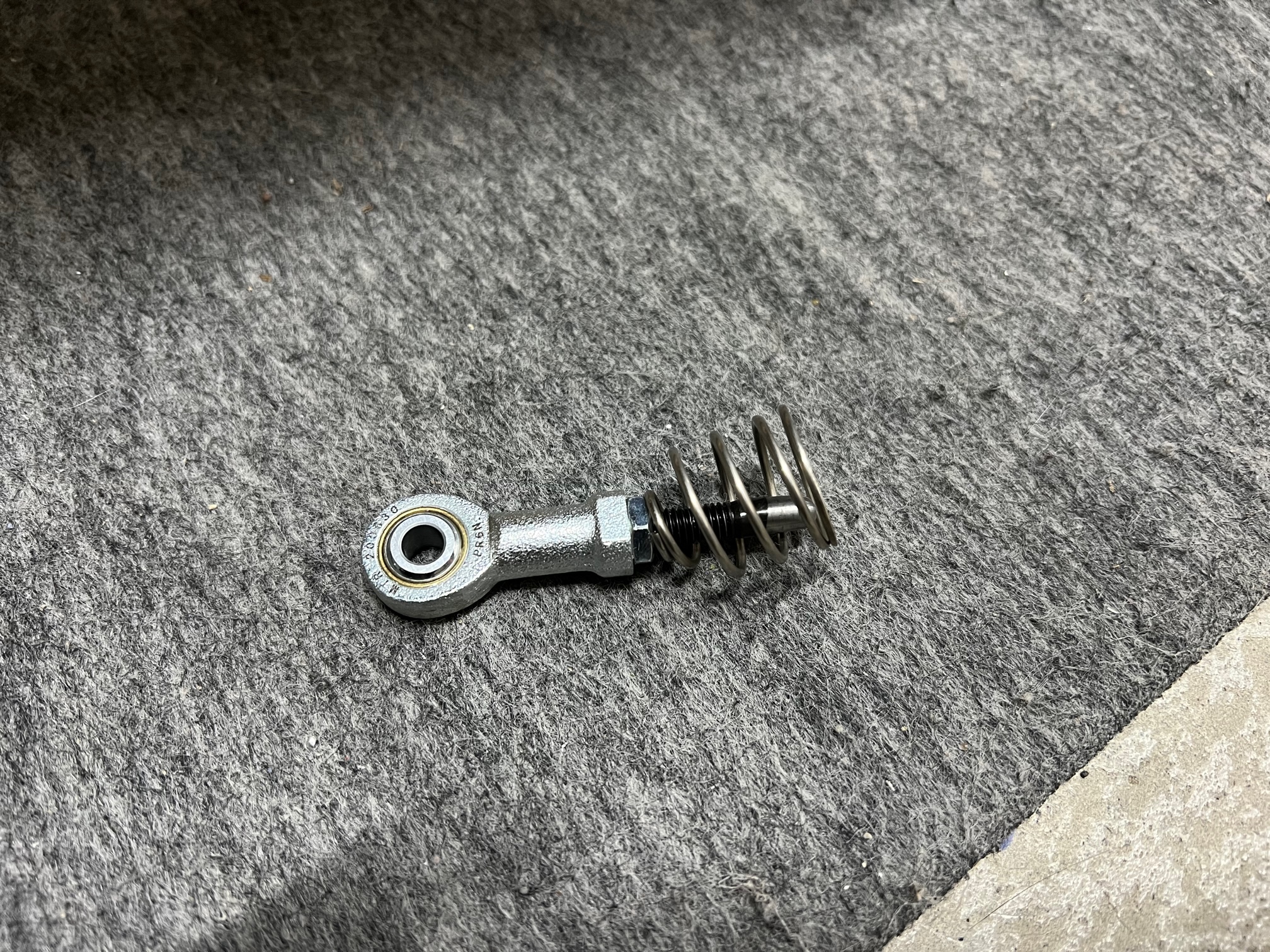写真のように、ロッドエンド、リターンスプリングを仮組します。