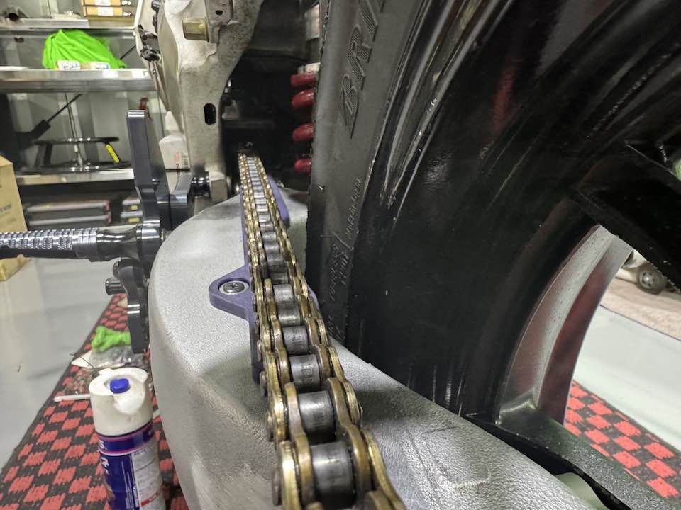 純正のチェーンスライダーはローラーガイドが付いてますが、オフセットさせると