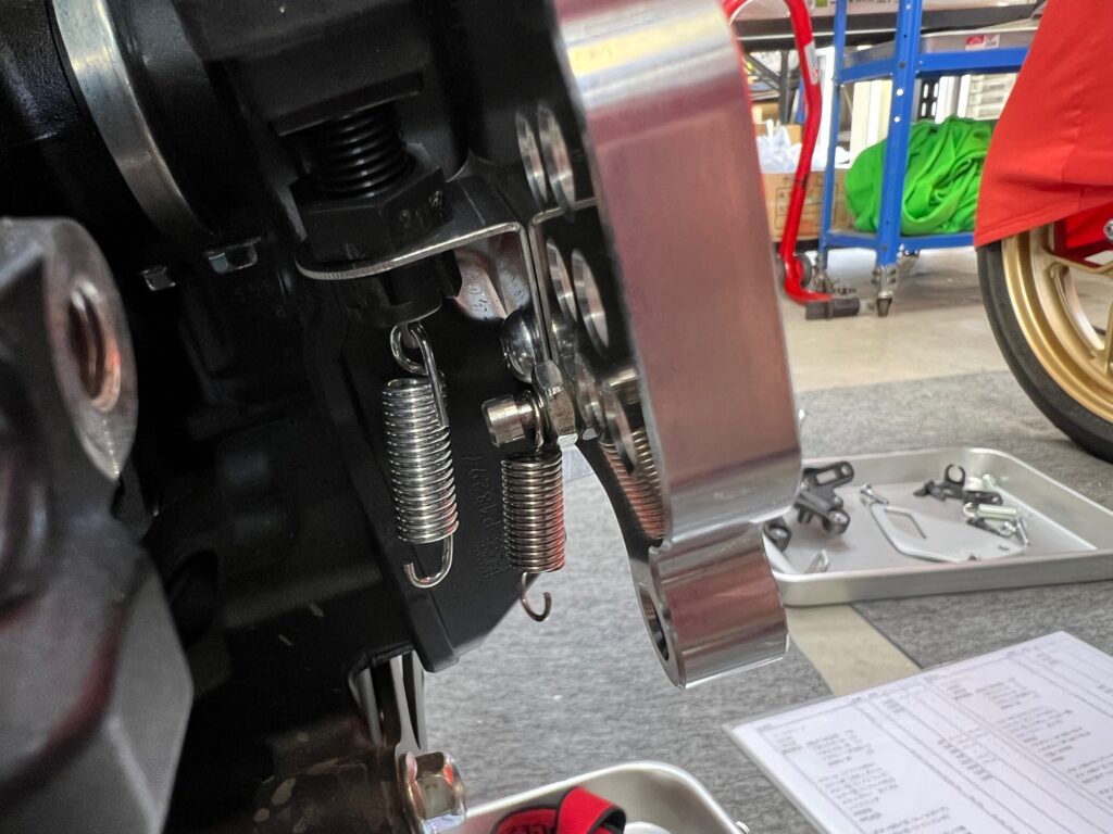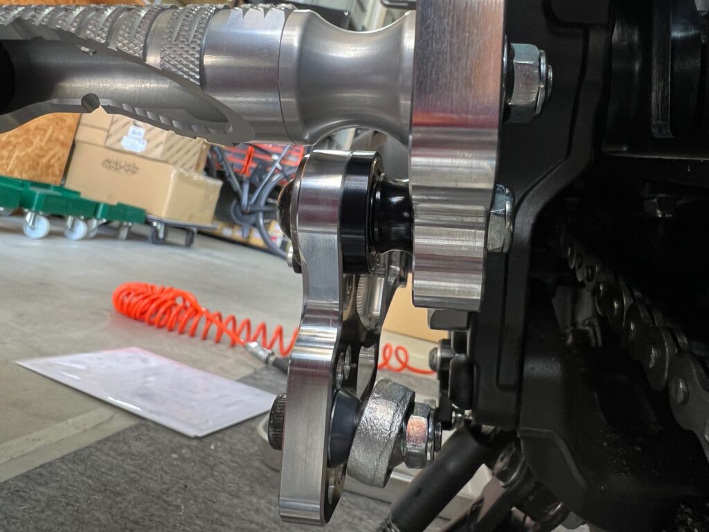 ボタン M8×55でシフトリンクをサイドスタンドに固定します。