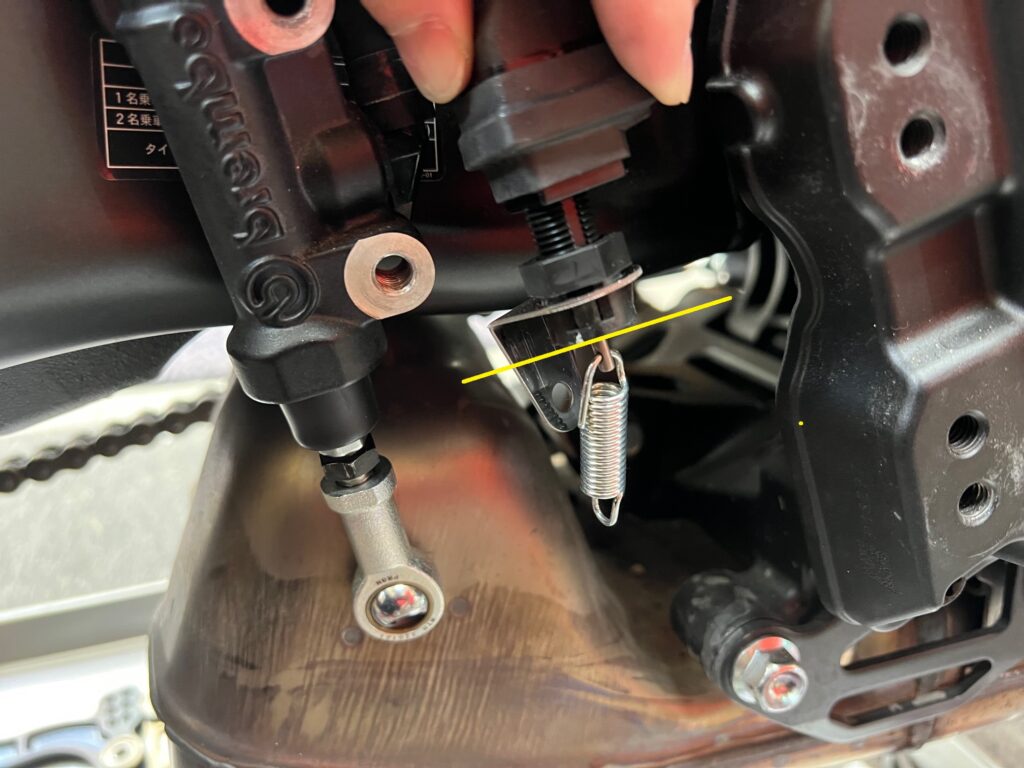 ブレーキホースですが、純正のままだと角度が少しキツいです。