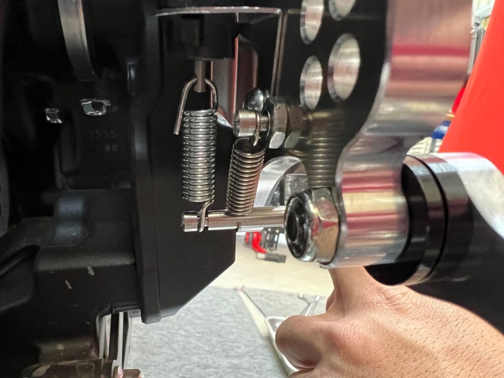 リターンスプリング用のバネポストを固定し、スプリングをひっかけてください。