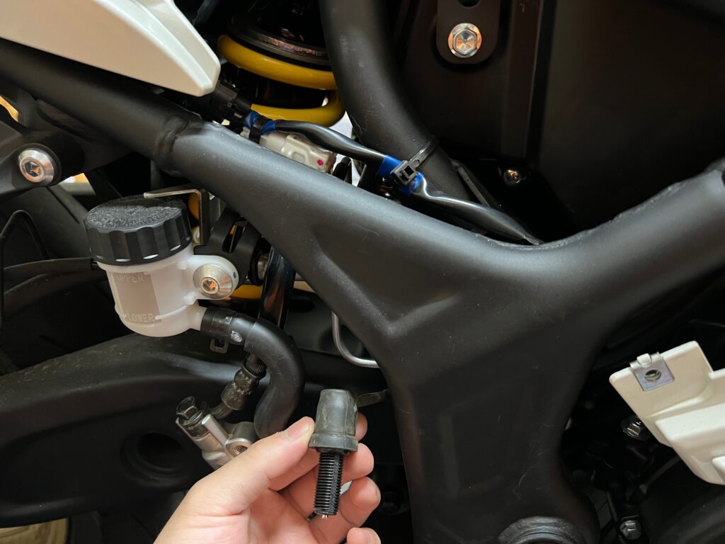 タンク横のカウルを外した状態で作業を始めてください。