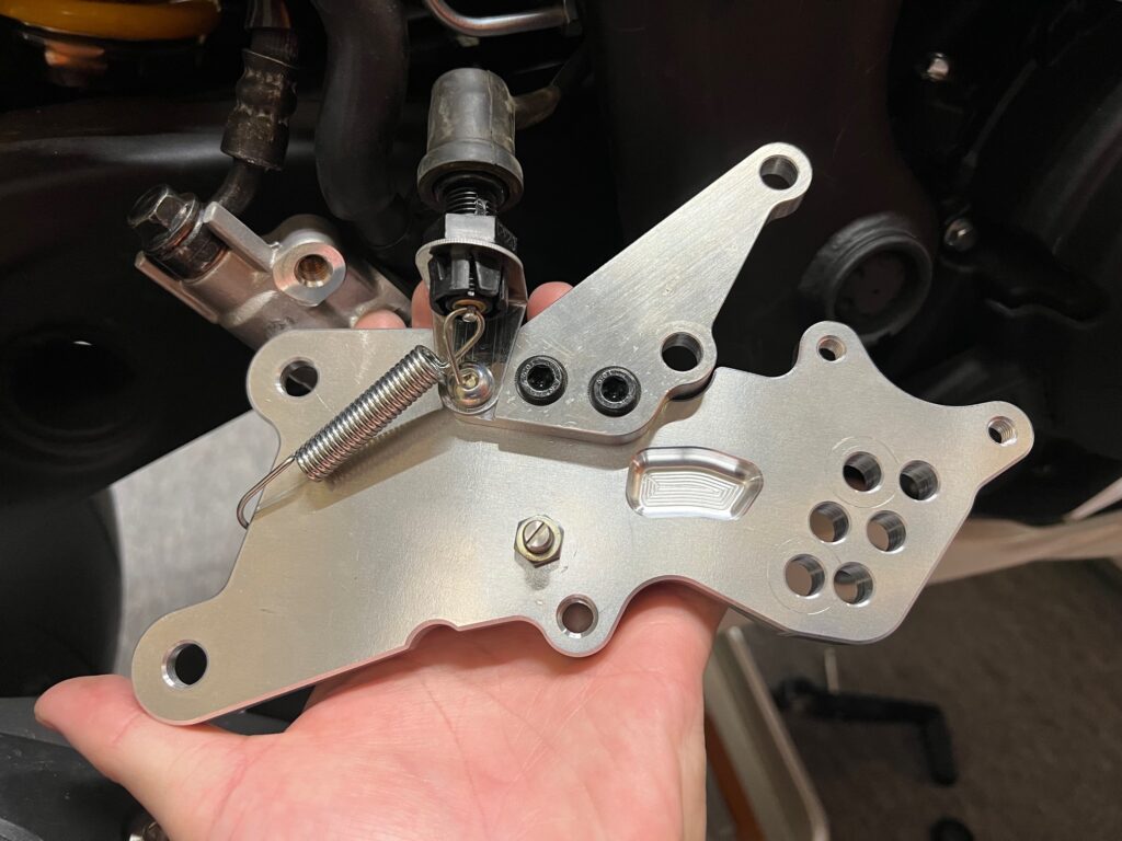 裏面に、バネポストM6×20、マスタープレート、ブレーキスイッチステーを取り付けます。