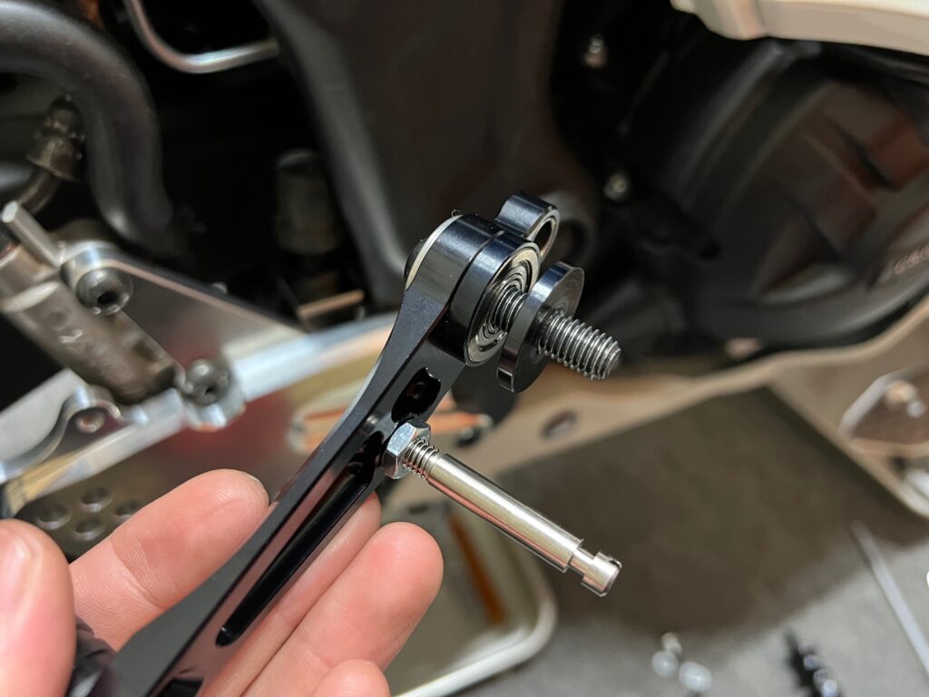 ボタン M8×55でシフトリンクをサイドスタンドに固定します。