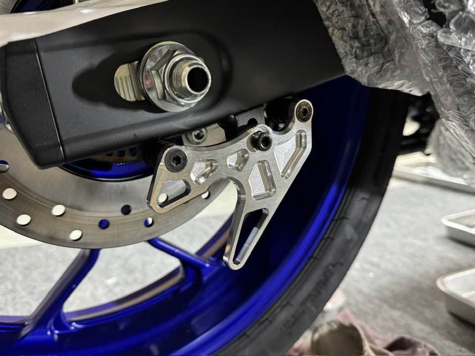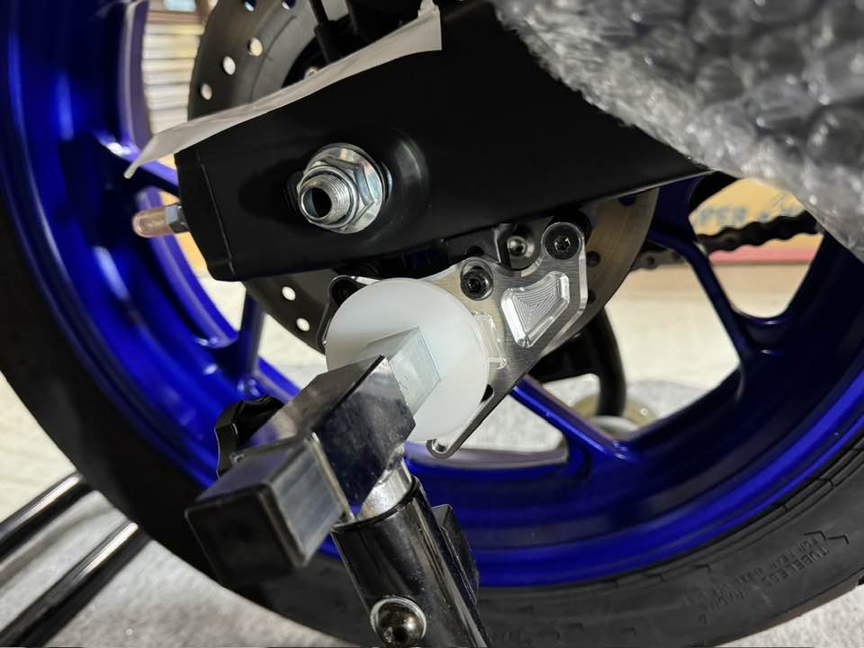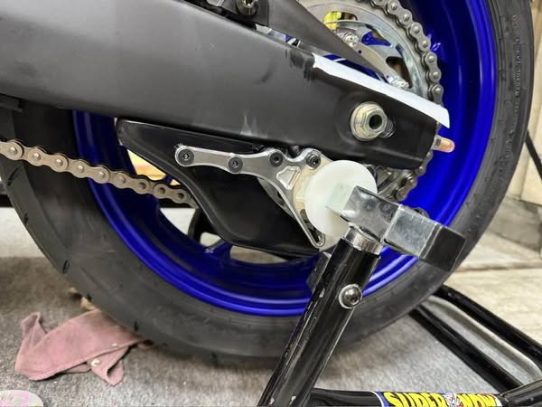 本来、リアスタンドボスが取りいているM8タップを使用します。