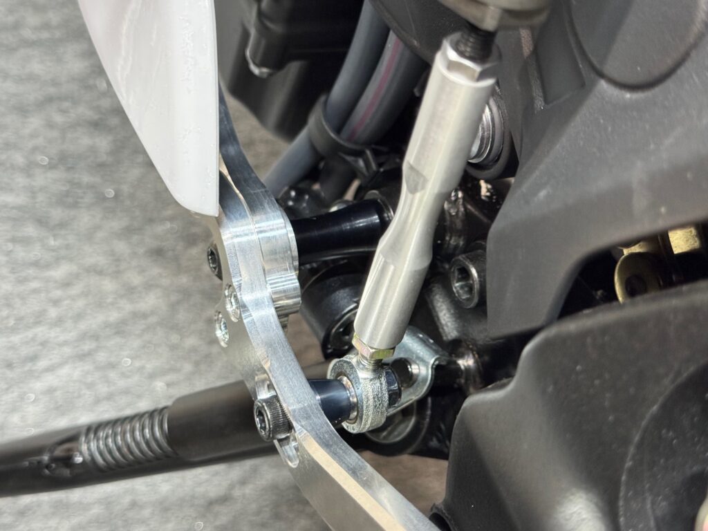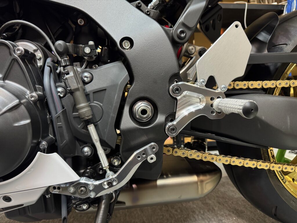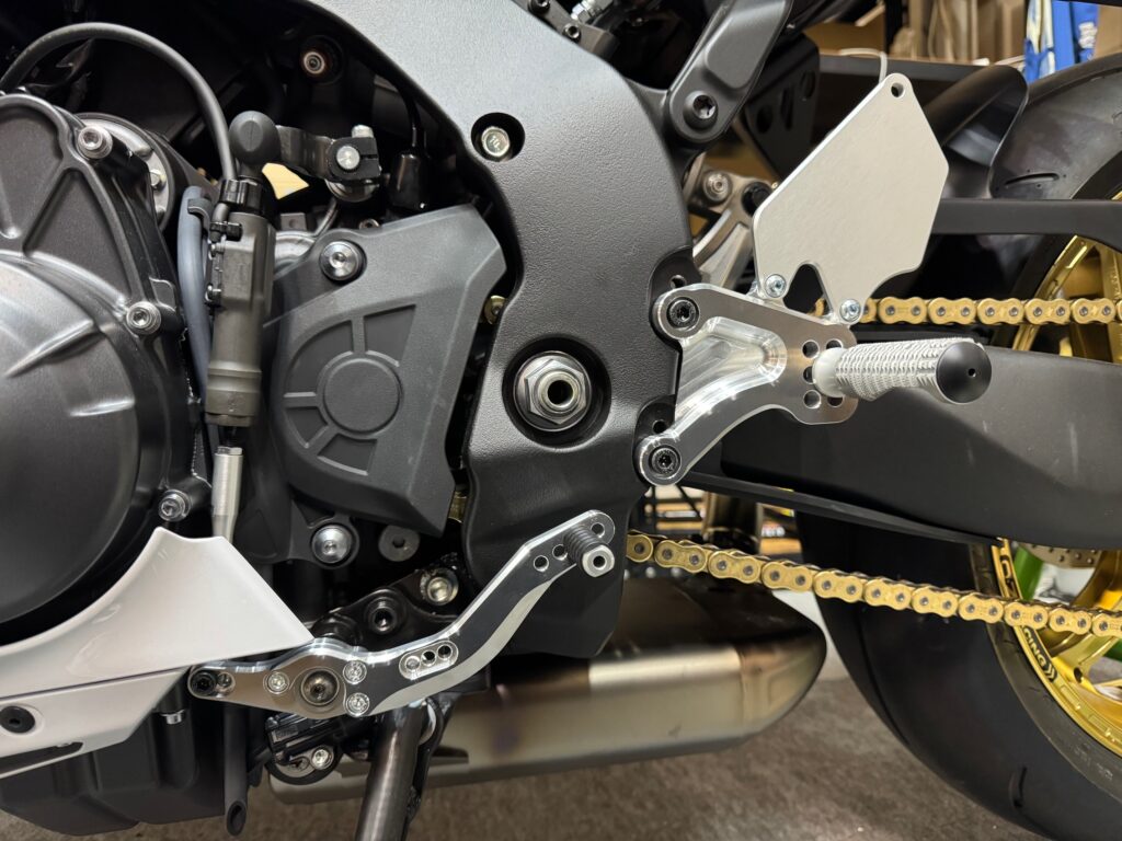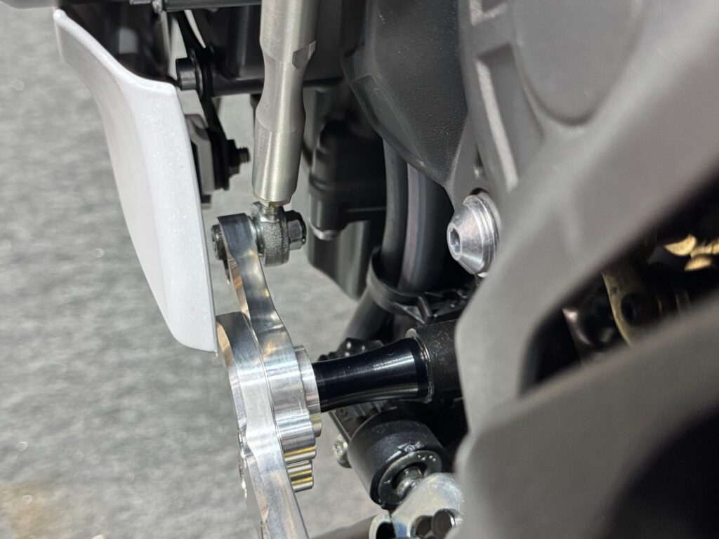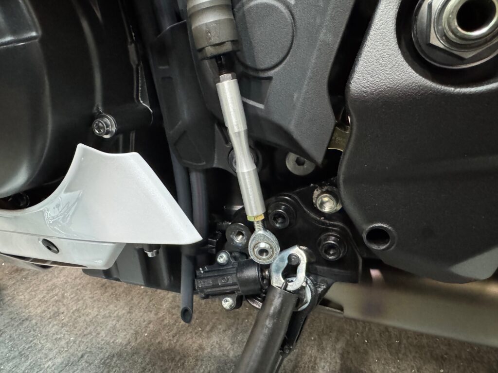 シフトペダルの根元に、カラーXを挟み、ボタンM8×60で固定。