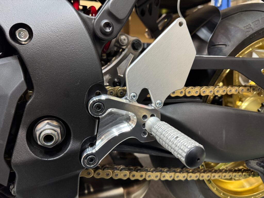 ブレーキスイッチの位置調整は、全て取り付けた状態でステップの裏に手を入れて調整できます。
