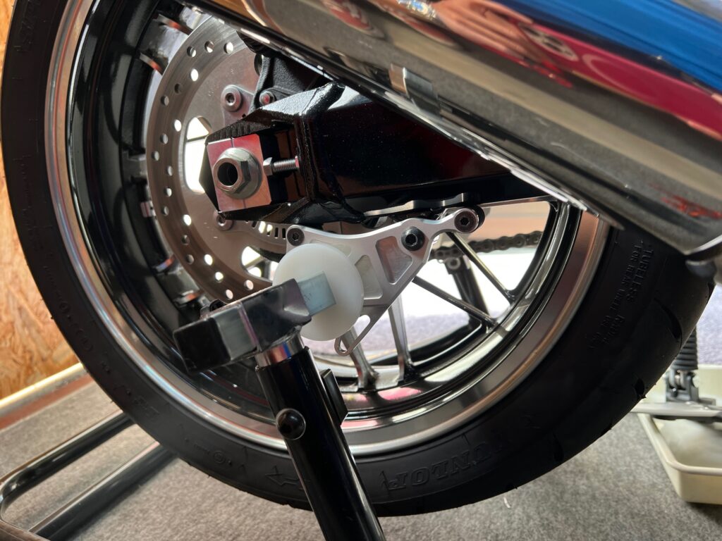 本来、リアスタンドボスが取り付いているM8タップを使用します。