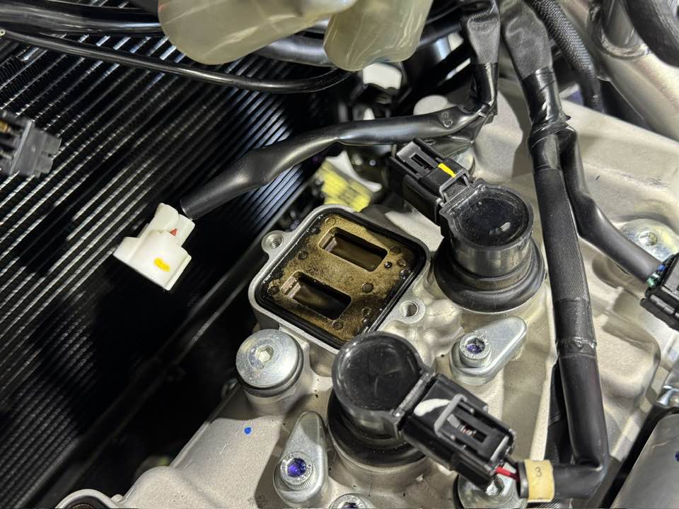 スロットルボディを外し、赤丸4か所に差し込みます。