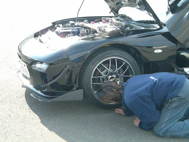 今様は今シーズン3回目のエントリーですが残念ながら今回はウエットです。 仙人の天気予報当たりです・・・ けどせっかくのエントリーなので一生懸命走りました! わざわざ長野までアライメントのみ仙人に見てもらいに行ったんだからね(笑) 尻込みしてる連中を横目に早速コースイン! 雨の日の素人(今様含む)は走り込むほどタイムがあがる! これ鉄則なんだぜ! 寒いので1.6K圧で出たけど(通常1.5K)タイヤのグリップは上がりません!? 5周でピットイン! タイムは8秒563。エアー測ると1.7K??? 更に5周!タイムは6秒028。エアー測ると1.9K。 気合投入!更に5周!タイムは5秒883。エアー測ると2.1K。